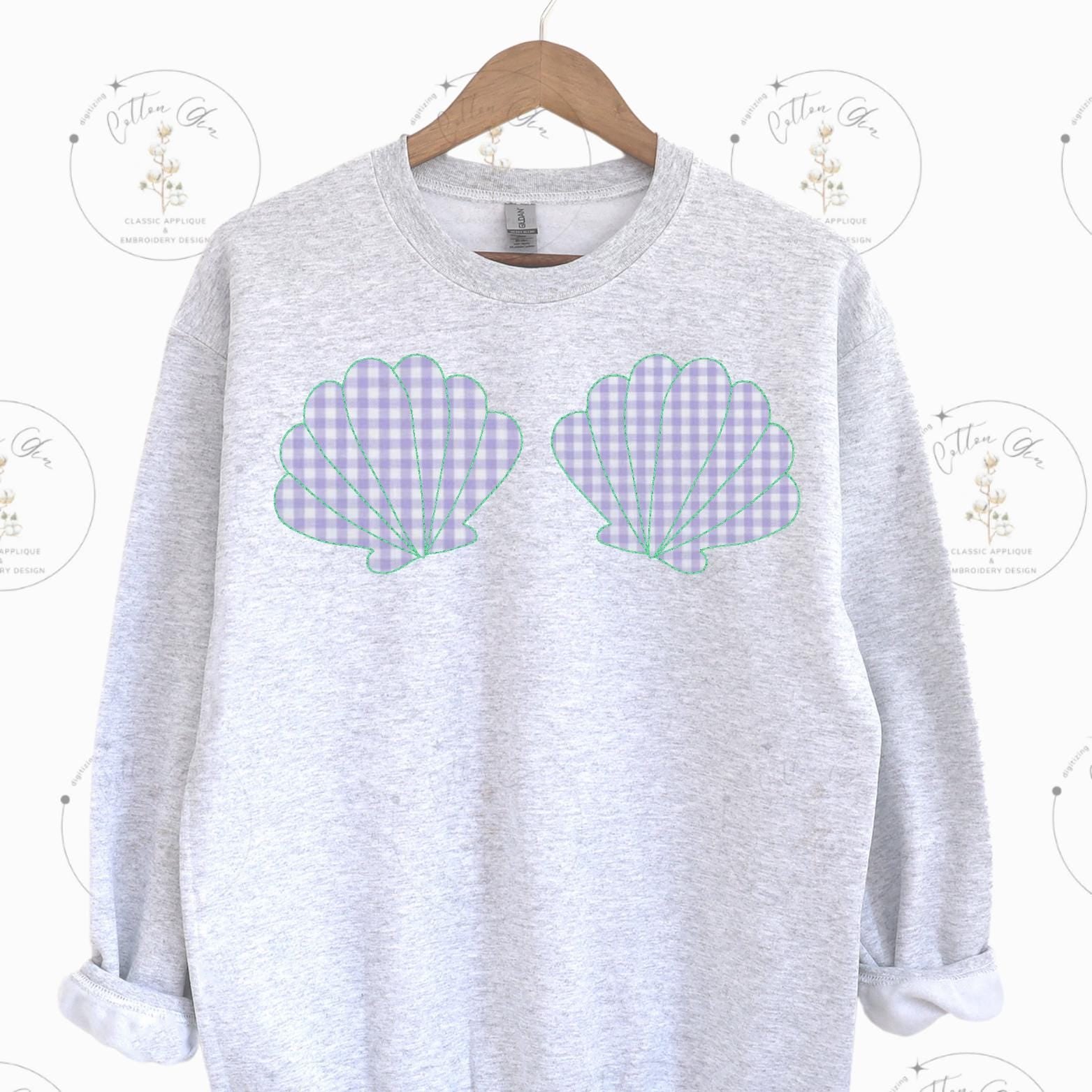 Summer Mermaid Bikini Sea Shell Top Bean Stitch Applique machine embroidery design instant download by Cotton Gin Digitizing four sizes